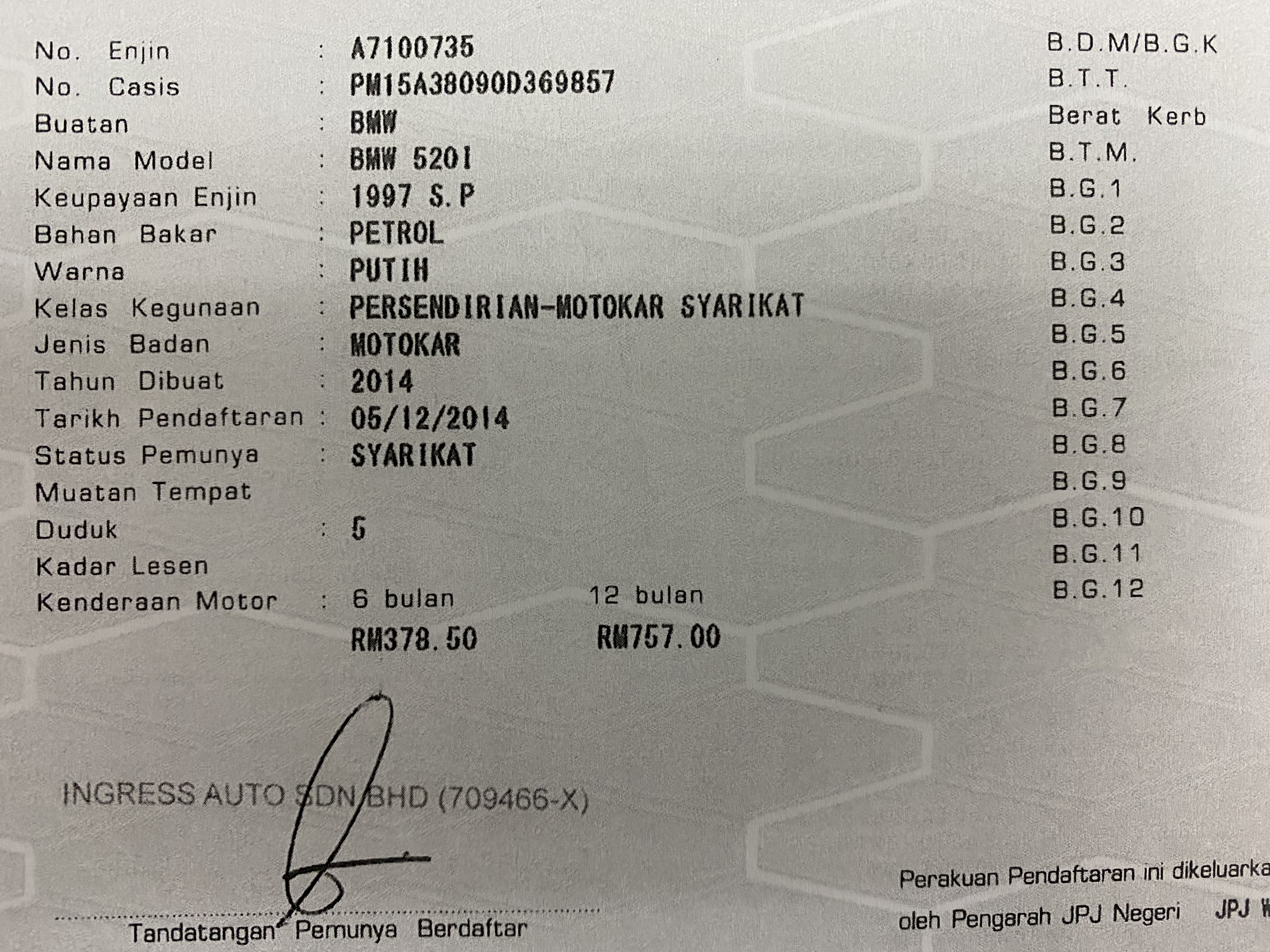 Tahun No Plat Kenderaan